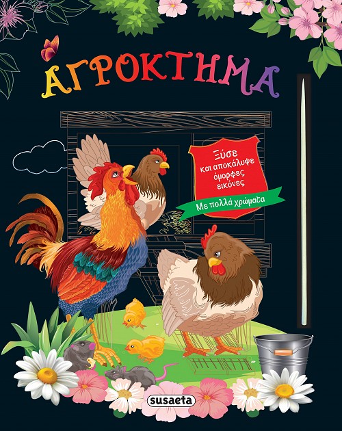 Αποκάλυψε τις εικόνες από το αγρόκτημα που κρύβονται στο βιβλίο! Με τη βοήθεια της ξύλινης γραφίδας ξύσε τις μαύρες επιφάνειες και δες τες να χρωματίζονται με τα πιο φανταστικά χρώματα! Θα βρεις επίσης χαριτωμένα σχέδια αγαπημένων ζώων για να τα ζωγραφίσεις όπως σου αρέσει. Οι σελίδες αποσπώνται από το βιβλίο για να τις χαρίσεις στους φίλους σου ή να διακοσμήσεις με αυτές το δωμάτιό σου.