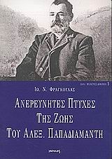 Έτσι, μέσα από τις "Ανερεύνητες πτυχές της ζωής του Αλεξ. Παπαδιαμάντη", του βιβλίου ορόσημου του Ιω. Ν. Φραγκούλα, μαθαίνουμε ποια είναι τα πραγματικά πρόσωπα που αναφέρονται στα διηγήματά του και έχουν σκιαθίτικη την υπόθεσή τους. Καταγράφεται το πραγματικό τους όνομα, το επάγγελμα που εξασκούσαν, οι αρετές και τα ελαττώματά τους. Χωρίς τον Παπαδιαμάντη χάνουμε τις ρίζες του νέου μας εθνισμού. Παύουμε να είμαστε Έλληνες. Να γιατί οι σελίδες των διηγημάτων του ζουν επάνω από τόπο και χρόνο. Να γιατί οι ήρωές του είναι οι διπλανοί μας, είμαστε εμείς, είναι όλος ο κόσμος. Ο συγγραφέας δεν αφήνει ανερεύνητη καμιά πτυχή του έργου του Παπαδιαμάντη. Το ακτινογραφεί σε βάθος.