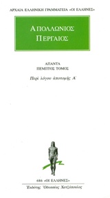 Το Α΄ βιβλίο των "Κωνικών" όπου περιλαμβάνονται τα στοιχειώδη θεωρήματα σχετικά με τη γένεση και τις βασικές ιδιότητες των τριών κωνικών τομών, της παραβολής, της υπερβολής και της έλλειψης....