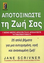 Μήπως οι πιέσεις του ρυθμού της ζωής σας, σας κάνουν να νιώθετε μερικές φορές πως χάνεται τον έλεγχο; Θα θέλατε να ξυπνάτε κάθε πρωί γεμάτοι αισιοδοξία και προσμονή για την καινούργια μέρα; Θέλετε να νιώθετε εκπληκτικά και να έχετε πάντα υπέροχη εμφάνιση; Επιθυμείτε ευτυχισμένες, συναρπαστικές σχέσεις; Θα θέλατε να ανακτήσετε τον έλεγχο του σπιτιού, της δουλείας και ολόκληρης της ζωής σας; Το βιβλίο αυτό θα σας βοηθήσεις να πετύχετε όλα όσα πραγματικά επιθυμείτε. Το πρόγραμμα Αποτοξίνωση και ζωή θα σας δείξει πως να ξεπερνάτε τα εμπόδια της ζωής σας ενώ ταυτόχρονα θα νιώθετε εκπληκτικά αποτοξινωμένοι, ανανεωμένοι και έτοιμοι για δράση. Η Jane Scrivner συνιδρυτής της Βρετανικής Σχολής Συμπληρωματικής Θεραπείας ( The British School of Complementary Therapy) και συγραφέας του best seller Detox yourself, δημιούργησε ένα πρόγραμμα 25 βημμάτων που θα μεταμορφώσει κάθε πλευρά της ζωής σας - το σώμα, το νου, το σπίτι, την εργασία, και τις σχέσεις σας. Ανακαλύψτε δωδεκάδες εύκολους τρόπους, για να νιώσετε ευτυχία, υγεία και απόλυτη αναζωογόνηση.