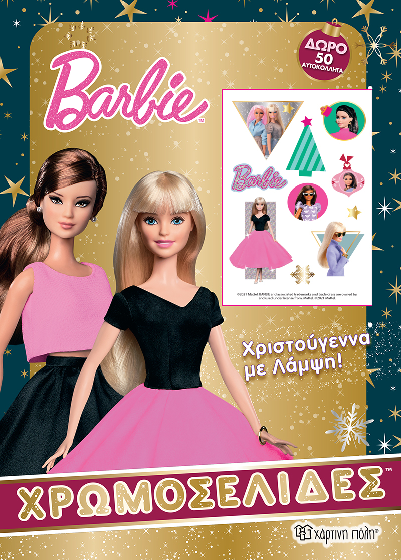 Βιβλίο με διασκεδαστικά παιχνίδια, σελίδες χρωματισμού και 50 αυτοκόλλητα με την αγαπημένη Barbie και την παρέα της.