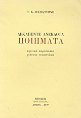 Είναι γνωστό ότι ο Τ. Κ. Παπατσώνης, αυτός ο ιδιαίτερος τεχνίτης του ποιητικού λόγου, υπήρξε ιδιαίτερα επιλεκτικός όσον αφορά το ποια από τα πολυπληθή ποιήματά του επέλεξε να συσσωματώσει στις εκδομένες συλλογές του