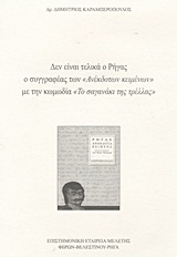 Με τη μελέτη αυτή αποσαφηνίζονται τα σχετικά με το όνομα και την καταγωγή του εθνεγέρτη, που το βαπτιστικό του όνομα ήταν Ρήγας και ως επώνυμο προσέθετε το Βελεστινλής, δηλωτικό του τόπου καταγωγής του....