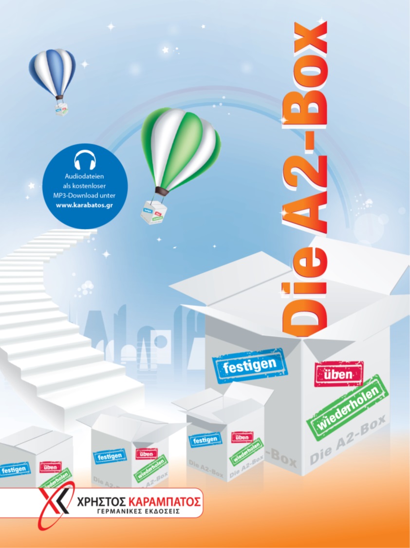 Το βιβλίο Die A2-Box προσφέρει πλούσιο υλικό για επανάληψη όλης της ύλης του επιπέδου Α2 και προσφέρεται τόσο για το μάθημα στην τάξη όσο και για την ανεξάρτητη μελέτη στο σπίτι. Οκτώ θεματικές ενότητες καλύπτουν τη θεματολογία του επιπέδου Α2 και προσφέρουν μια συστηματική επανάληψη λεξιλογίου, εκφραστικών μέσων και γραμματικής. Ταυτόχρονα, οι μαθητές εξασκούνται στην κατανόηση γραπτών και ακουστικών κειμένων, τη γραπτή και προφορική έκφραση. Tο ακουστικό υλικό που προσφέρει τη δυνατότητα ελέγχου των ασκήσεων και προφορικής εξάσκησης, διατίθεται παρακάτω ως δωρεάν download. Βρείτε εδώ τα ακουστικά: https://www.karabatos.gr/mp3/Die-A2-Box.zip