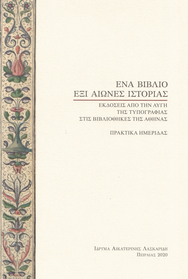 | Ξενόγλωσσος τίτλος | ONE BOOK, SIX CENTURIES OF HISTORY. EDITIONS FROM THE DAWN OF PRINTING IN THE LIBRARIES OF ATHENS |