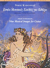 Οι "Εννέα μουσικές εικόνες" είναι βασισμένες σε απλά και σύντομα θέματα που γράφτηκαν από το 1990 ως το 1996, οπότε συγκεντρώθηκαν σ ένα ενιαίο έργο για κιθάρα. Κατά καιρούς τα θέματα αυτά πήραν διάφορες μορφές και χρησιμοποιήθηκαν για να ντύσουν θεατρικές ή κινηματογραφικές εικόνες, που -συμπτωματικά ή όχι- σχετίζονταν σχεδόν όλες με παιδιά.