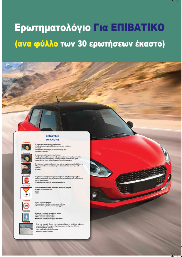 Εδώ έχουν καταχωρηθεί όλα οι ερωτήσεις του επιβατικού Περιλαμβάνει: 30 ερωτήσεις για κάθε φύλλο εξέτασης Συνολικά υπάρχουν1140 ερωτήσεις και οποιος τις διαβάσει θα επιτύχει στις εξετάσεις του ΕΠΙΒΑΤΙΚΟΥ εγγυημένα.
