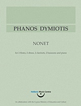 Dymiotis had been acknowledged as an important composer long before he "officially" studied composition. In an interview given in Nicosia in 1997 (O Phileleutheros, 29 June), Dymiotis said that his music was gradually becoming more approachable to a wide public. In the Nonet this trend is not yet discernible; this is music applying sophisticated techniques. The outstanding characteristic of the work is imitative counterpoint: we have here a twenty-one-year-old composer with a fast, sharp and luminous brain, playing with a wealth of canonical contrapuntal devices upon a limited number of short melodic motives. The effect is music of high-spirited vitality and perfect cohesion.