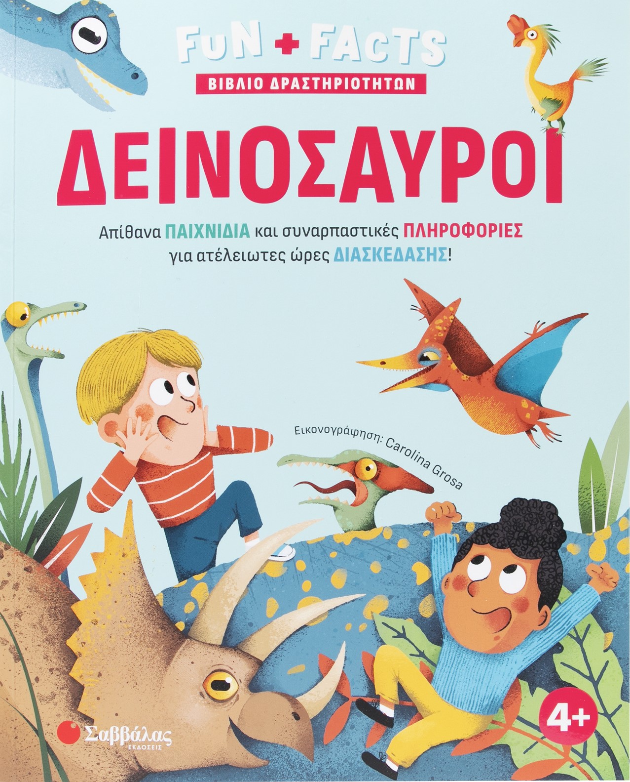 Ένα βιβλίο με υπέροχη εικονογράφηση και πολλές διασκεδαστικές δραστηριότητες: ΠΡΟΓΡΑΦΗ, ΖΩΓΡΑΦΙΚΗ, ΒΡΕΣ ΤΙΣ ΔΙΑΦΟΡΕΣ, ΨΑΞΕ ΚΑΙ ΒΡΕΣ, ΛΑΒΥΡΙΝΘΟΙ. Τα παιδιά θα παίξουν, θα διασκεδάσουν και θα διαβάσουν ενδιαφέρουσες πληροφορίες και ένα σωρό αστείες και παράξενες λεπτομέρειες για τους δεινόσαυρους.