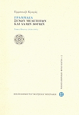 Στο πρώτο μέρος του πρώτου τόμου της δίτομης αυτής έκδοσης δημοσίευσα ελληνόγλωσσα γράμματα ξένων επιστημόνων και λογίων, που απευθύνονται σ εμένα· στο δεύτερο μέρος του τόμου εξέδωσα γράμματα των ίδιων και άλλων ξένων επίσης επιστημόνων, γραμμένα αυτά στην εθνική γλώσσα του επιστολογράφου....