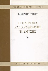 "... Ελπίζω πως αυτά που είπα έχουν καταστήσει σαφές γιατί διάλεξα για τίτλο το "Η φιλοσοφία και ο καθρέφτης της φύσης". Εικόνες μάλλον παρά προτάσεις, μεταφορές, παρά αποφάνσεις, καθορίζουν τις περισσότερες φιλοσοφικές μας πεποιθήσεις. Η εικόνα που κρατάει αιχμάλωτη την παραδοσιακή φιλοσοφία είναι αυτή του νου ως μεγάλου καθρέφτη, ο οποίος περιέχει διάφορες αναπαραστάσεις -άλλες ακριβείς, άλλες όχι- και είναι δυνατόν να μελετηθεί με καθαρές, μη εμπειρικές, μεθόδους. Χωρίς αυτή την έννοια του νου ως καθρέφτη, η έννοια της γνώσης ως αναπαραστατικής ακρίβειας δεν θα επιβαλλόταν αφ εαυτής. Χωρίς αυτή την τελευταία δεν θα είχε νόημα η κοινή στον Καρτέσιο και τον Καντ στρατηγική -το να αποκτούμε ακριβέστερες αναπαραστάσεις ελέγχοντας, επιδιορθώνοντας και γυαλίζοντας τον καθρέφτη..."