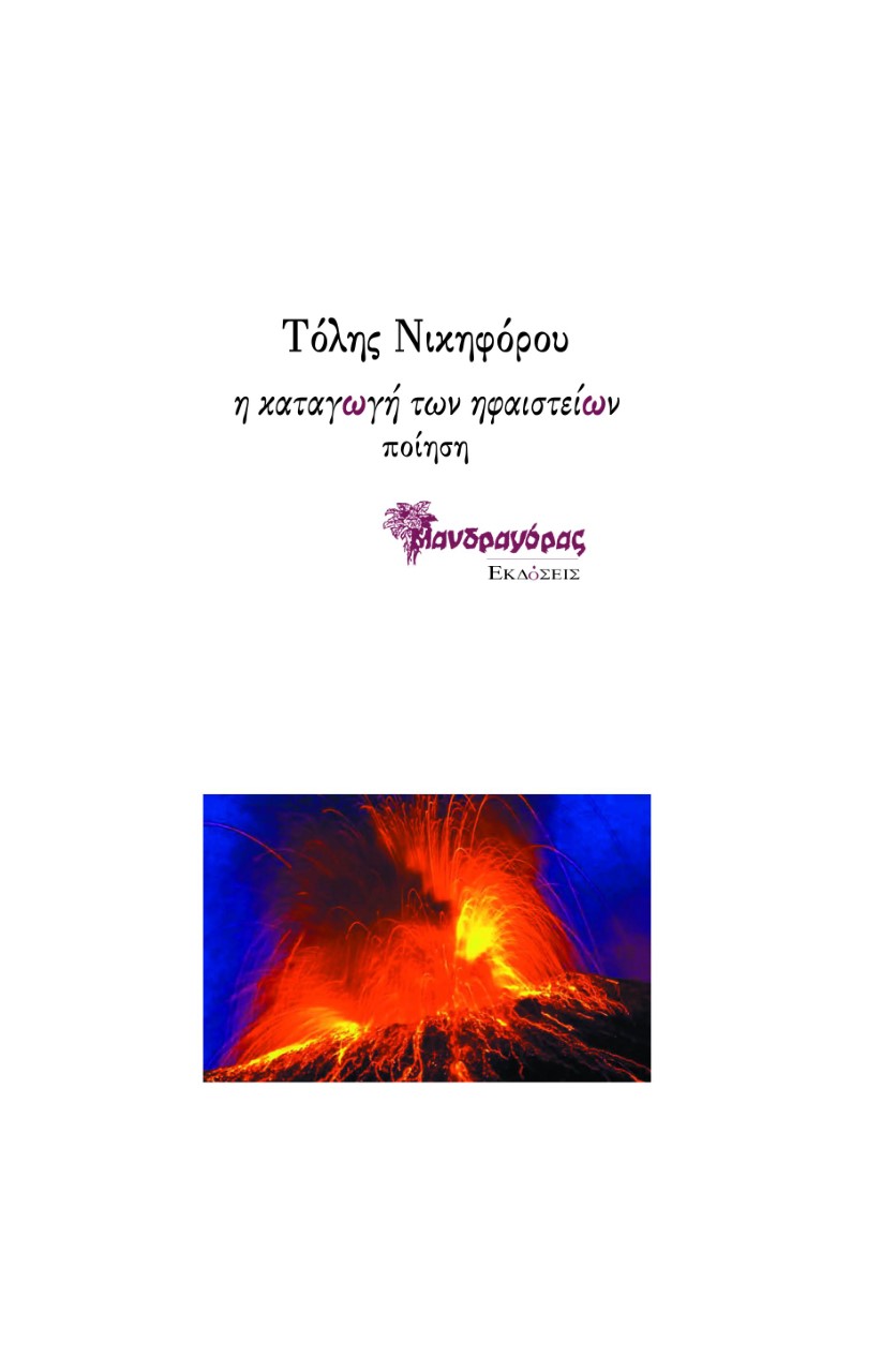 Δέκατη τρίτη συλλογή, μετά από πενταετή (ποιητική) ανάπαυλα, του εκ Θεσσαλονίκης Τόλη Νικηφόρου, που αποδεικνύει με το γνώριμο λιτό, διαφανή και ρητά διατυπωμένο λόγο του, την εξακολουθητική ζώσα πνοή της ποίησης, παρά (και πέρα από) τη μαζική αδιαφορία των σύγχρονων κοινωνιών....