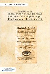 Είχα την τύχη να ακούσω για τον λόγιο ιερομόναχο Γαβριήλ Καλλονά κατά τον διορισμό μου ως δασκάλα, πριν από αρκετά χρόνια, στο Κόρθι της Άνδρου, τόπο καταγωγής της οικογένειας του λογίου. Αναζητώντας τα αναγκαία στηρίγματα στο λειτούργημά μου, με χαρά οδηγήθηκα στην απόφαση να ασχοληθώ με τη λογιοσύνη του, επικεντρώνοντας το ερευνητικό ενδιαφέρον μου στη μελάτη της Παιδαγωγίας. Ο Καλλονάς υπήρξε ένας μεγάλος λειτουργός, δάσκαλος και κληρικός, αφιερωμένος στον άνθρωπο. Πίστεψε με θέρμη στο ιδιόμορφο και σημαντικό έργο του παιδαγωγού, αυτό που ο ίδιος χαρακτηρίζει μεγάλην τέχνην, η οποία έχει πολλά να προσφέρει, τόσο στους παιδαγωγούμενους όσο και στους παιδαγωγούς προς τους οποίους απευθύνεται με το σύγγραμμά του.