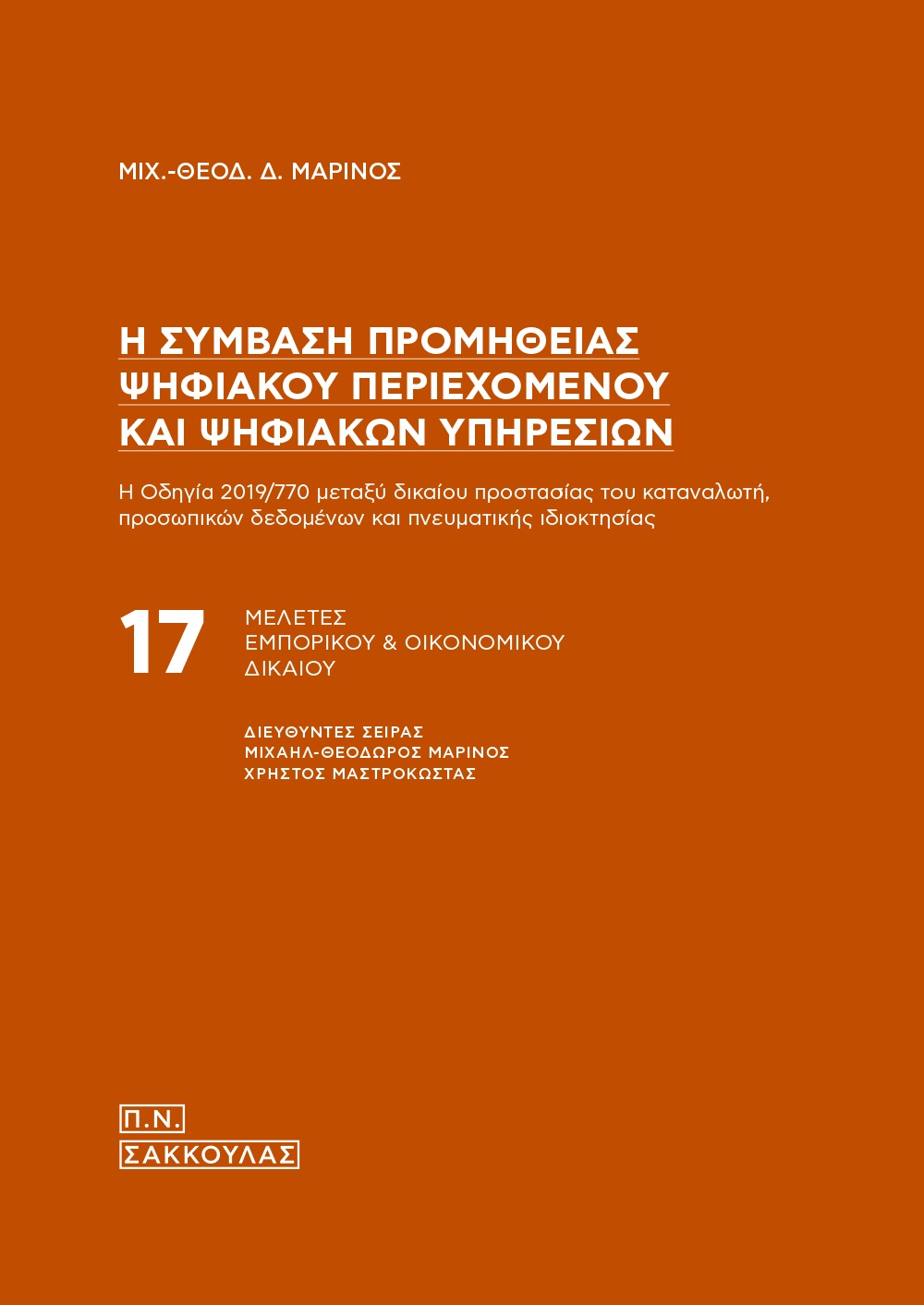 Η παρούσα μονογραφία εκκινεί από και εξετάζει την αμφίδρομη σχέση δικαίου και τεχνολογίας, η οποία χαρακτηρίζει το δίκαιο των προσωπικών δεδομένων, την πνευματική ιδιοκτησία, αλλά περαιτέρω καταλαμβάνει και το ενοχικό δίκαιο ιδίως στο πεδίο προστασίας του καταναλωτή. Η μελέτη εστιάζει αποκλειστικά στην πρόσφατη Οδηγία 2019/770 για την προμήθεια ψηφιακού περιεχομένου ή ψηφιακών υπηρεσιών έναντι τιμήματος ή έναντι των προσωπικών δεδομένων του χρήστη/καταναλωτή. Η Οδηγία αυτή, μαζί με τη δίδυμη Οδηγία 2019/771 για την πώληση αγαθών με ψηφιακά στοιχεία, συνιστά μια σημαντική ψηφίδα στο δίκαιο προστασίας του καταναλωτή στη μακρά διαδικασία του ψηφιακού μετασχηματισμού. Στο επίκεντρο της μονογραφίας βρίσκεται το κυρίαρχο σήμερα επιχειρηματικό μοντέλο «ψηφιακό περιεχόμενο/ψηφιακές υπηρεσίες έναντι προσωπικών δεδομένων», το οποίο όλοι, ως υποκείμενα προσωπικών δεδομένων και ως καταναλωτές, χρησιμοποιούν καθημερινά, συχνά χωρίς να το συνειδητοποιούν. Ένα μεγάλο μέρος του έργου αφιερώνεται ειδικότερα στη νομική ανάλυση του ως άνω μοντέλου και στην επίλυση βασικών προβλημάτων που συνέχονται με το ερμηνευτικό αίτημα του συγχρονισμού μεταξύ ενοχικού δικαίου και δικαίου προστασίας των προσωπικών δεδομένων.