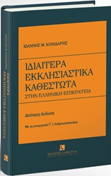 Πενταετία μετά από την πρώτη έκδοση πολλές και διάσπαρτες τροποποιήσεις στη σχετική νομοθεσία, κυρίως με τροπολογίες σε άσχετα νομοθετήματα, αλλά και η έκδοση, κατ’ εξουσιοδότηση του νόμου, σειράς νέων Κανονισμών που διέπουν την Εκκλησία της Κρήτης και κατ’ επέκταση τις επαρχίες των Δωδεκανήσων, κατέστησαν επιβεβλημένη τη νέα έκδοση του μοναδικού αυτού στη νομική βιβλιογραφία έργου του Ομότ. Καθηγητή του Εκκλησιαστικού Δικαίου στη Νομική Σχολή του Πανεπιστημίου Αθηνών Ι. Μ. Κονιδάρη. Το έργο αυτό εκθέτει για πρώτη φορά ενιαίως το δίκαιο που διέπει όλες εκείνες τις περιοχές της ελληνικής επικράτειας που υπάγονται στο Οικουμενικό Πατριαρχείο της Κωνσταντινουπόλεως. Πράγματι, στην ελληνική επικράτεια ισχύουν παραλλήλως τέσσερα συστήματα κανόνων εκκλησιαστικού δικαίου της ίδιας, δηλαδή ορθόδοξης, δογματικής κατευθύνσεως. Τούτο αποτελεί μοναδική εξαίρεση στην Ορθόδοξη Εκκλησία. Ειδικότερα ισχύουν, το δίκαιο της Εκκλησίας της Ελλάδος, το δίκαιο της ημιαυτόνομης Εκκλησίας της Κρήτης, το δίκαιο του Αγίου ΄Ορους ΄Αθω και το δίκαιο του Οικουμενικού Πατριαρχείου, το οποίο διέπει τις εκκλησιαστικές επαρχίες της Δωδεκανήσου. Ακριβώς η διαπίστωση ότι κοινός παρονομαστής των ιδιαίτερων αυτών εκκλησιαστικών δικαιοδοσιών είναι η εξάρτησή τους από το Οικουμενικό Πατριαρχείο της Κωνσταντινουπόλεως αποτέλεσε το θεμέλιο, επί του οποίου στηρίχθηκε η διάρθρωση της ύλης. Το πρώτο μέρος του έργου αφιερώνεται στις εκκλησιαστικές επαρχίες της Δωδεκανήσου, οι οποίες υπάγονται απευθείας στον Οικουμενικό Θρόνο. Στο μέρος αυτό αναπτύσσεται διεξοδικώς και το καθεστώς που διέπει το Οικουμενικό Πατριαρχείο τόσο εκκλησιαστικώς όσο και ως υποκείμενο δικαίου στη διεθνή, την τουρκική και την ελληνική έννομη τάξη. Το δεύτερο μέρος αφιερώνεται στην Εκκλησία της Κρήτης, η οποία, συμφώνως προς τον ισχύοντα σήμερα σε αυτήν "Καταστατικό Νόμο" είναι "ημιαυτόνομος έχουσα την κανονικήν εξάρτησιν αυτής εκ του Οικουμενικού Πατριαρχείου". Το τρίτο μέρος του έργου είναι αφιερωμένο στο Αγιώνυμο ΄Ορος, το οποίο «είναι, κατά το αρχαίον τούτου προνομιακόν καθεστώς, αυτοδιοίκητον τμήμα του Ελληνικού Κράτους» και τελεί ως προς το «πνευματικόν μέρος» υπό την ανώτατη εποπτεία του Οικουμενικού Πατριαρχείου. Η νέα έκδοση, γραμμένη στο ίδιο εύληπτο και επαγωγό ύφος και εμπλουτισμένο με όλες τις νομοθετικές και κανονιστικές αλλαγές και τη νεώτερη νομολογία, τόσο των ελληνικών δικαστηρίων όσο και του Ευρωπαϊκού Δικαστηρίου Δικαιωμάτων του Ανθρώπου, επιστεγάζεται με επιλογή βιβλιογραφίας, έτσι ώστε να αποτελεί ένα κατατοπιστικό βοήθημα για τους νομικούς της θεωρίας και της πράξη, αλλά και για ένα ευρύτερο κύκλο ενδιαφερομένων.