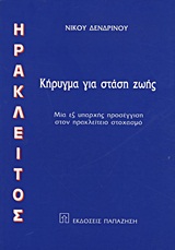 [...] Τελειώνοντας θέλω να υπογραμμίσω, ότι η παρούσα εργασία δέν αποτελεί μουσειακή έρευνα και δέν κάνει ιστορία της φιλοσοφίας. Σκοπός μου είναι να παρουσιαστή μια θεωρία, μια αντίληψη και στάση ζωής, όπως κατά τη γνώμη μου τη διακήρυξε ο Εφέσιος σοφός, ώστε αυτή να ζυγιστή μέσα στα σημερινά δεδομένα και να εκτιμηθή η αξία, που μπορεί να έχει για τη σύγχρονη ζωή. Αναγνωρίζω ότι, στην προσπάθεια μου να προσεγγίσω το ηρακλείτειο νόημα, έρχομαι σε συχνή αντιπαράθεση με μεγάλους και έγκυρους ερευνητές - αναπόφευκτο: αν πραγματικά θέλουμε η φιλοσοφία όχι να αναμασά τα ειπωμένα, αλλά ν αναζητά την αλήθεια, δέν μπορεί παρά να πρόκειται για μια μαχόμενη φιλοσοφία. Και βέβαια αισθάνομαι ότι σ αυτήν την προσπάθεια συμπορεύομαι με τον αναγνώστη, σε όσην έκταση έχει και τούτος την ίδια επιθυμία με μένα. Αλλά πάντως, για το προκείμενο θέμα μας, τον ειδοποιώ από τώρα ότι: ...στο τέλος η γεύση βγαίνει πικρή... (από τον πρόλογο του συγγραφέα)
