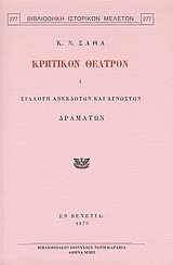 Ο Κωνσταντίνος Σάθας (βλ. αρ. 71 της Βιβλιοθήκης Ιστορικών Μελετών) δημοσίευσε πρώτος τα τέσσερα σημαντικότερα έργα (δύο τραγωδίες, μία κωμωδία και ένα ποιμενικό δράμα) της κρητικής λογοτεχνίας: την Ερωφίλη, τον Ζήνωνα, τον Στάθη και τον Γύπαρι (ή Πανώρια) του Γεωργίου Χορτάτση, από κώδικες της Μαρκιανής Βιβλιοθήκης της Βενετίας (πρώτος ο Σάθας αναφέρει τον όρο Κρητικόν θέατρον ). Ωστόσο, η σημασία του βιβλίου δεν περιορίζεται στη δημοσίευση ακέραιου του κειμένου τεσσάρων αριστουργημάτων της κρητικής λογοτεχνίας (1570-1669). Οι κριτικές παρατηρήσεις του ("ψιλαί υποθέσεις") στα εκτενή προλεγόμενά του (σελ. 5-91) είναι καίριες και βαρύτιμες νοηματικά. Ο Σάθας τοποθετεί εδώ ορθά τα ιστορικά πλαίσια του κρητικού θεάτρου, αναγνωρίζει τις καταβολές του στην ιταλική Αναγέννηση (και εντοπίζει τα δυτικά πρότυπα των τεσσάρων τραγωδιών), και το ενσωματώνει αριστοτεχνικά στην νεοελληνική λογοτεχνία. Εμφανείς είναι οι αποχρώσεις και οι επιρροές του ρομαντισμού στην αφήγησή του: η "αληθής ποίησις" μπορούσε να καλλιεργηθεί "υπό μόνου του λαού" (das Volk του Herder) στην "εθνική", δηλαδή τη δημοτική, γλώσσα. Η καλαισθησία των Κρητών απέβαλε, λοιπόν, τη σχολαστικότητα της βυζαντινής παράδοσης και δημιούργησε "τα πρώτα μνημεία του νεώτερου ελληνικού θεάτρου". Τα "διασωθέντα ναυάγια της εθνικής δραματουργίας" συναρμολογούν "το ταλαίπωρον σκάφος της μεσαιωνικής ημών φιλολογίας".