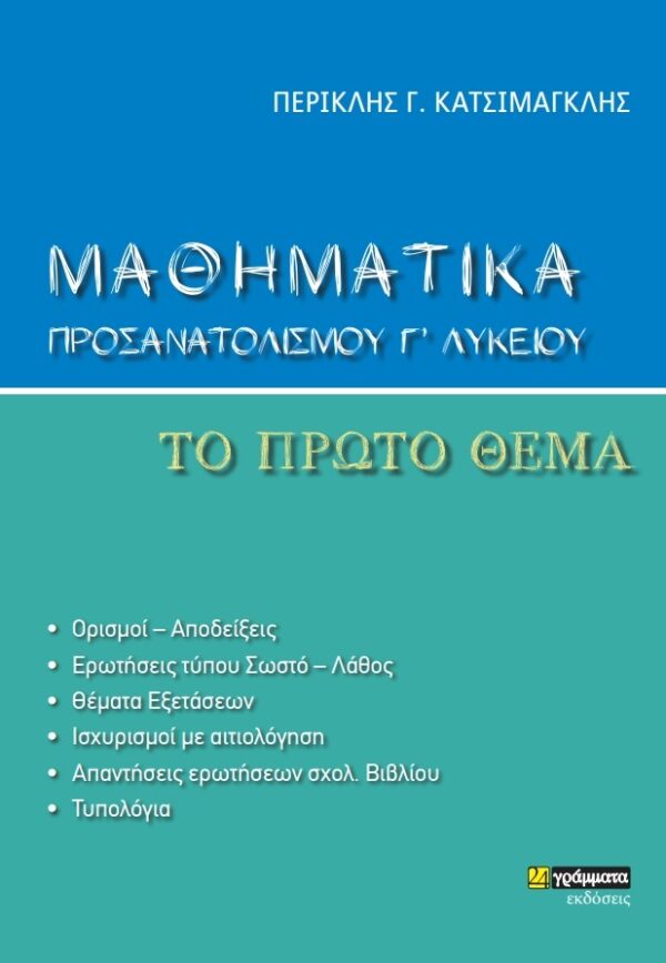 Το βιβλίο αυτό απευθύνεται στους μαθητές της Γ΄ Λυκείου για την προετοιμασία τους στο μάθημα Μαθηματικά Προσανατολισμού Θετικών Σπουδών για τις Πανελλαδικές Εξετάσεις και συγκεκριμένα για το Πρώτο Θέμα των Εξετάσεων.