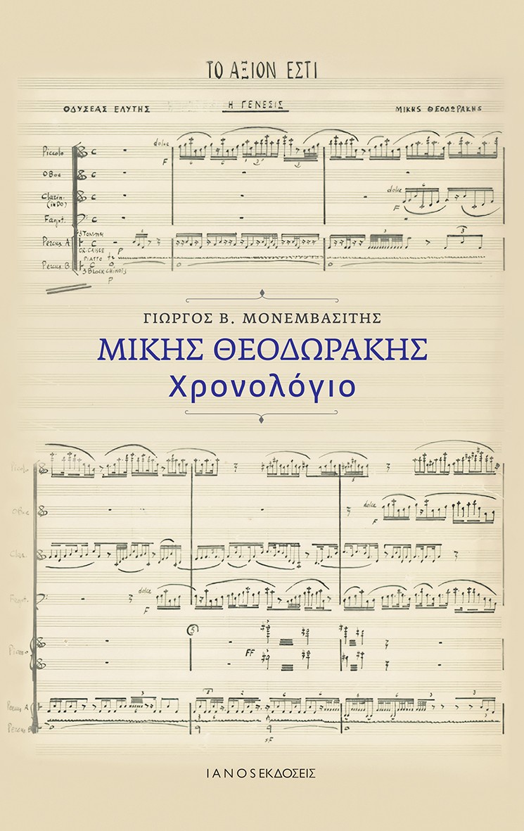 Ζωή μυθιστορηματική, έργο τεράστιο· από κάθε άποψη. Ένας ωκεανός οι πληροφορίες-ψηφίδες στη ζωή και στο έργο του· τόσες, όσες «μήτε του γιαλού δεν φτάνουν τα χαλίκια». Η αρχή, στο απώτερο βάθος του χρόνου· τέλος δεν υπάρχει… Άραγε, πόσες θα μπορούσαν να καταγραφούν σε ένα βιβλίο περιορισμένης, σχετικά, έκτασης, όταν μόνο και μόνο οι ερμηνείες του Canto General ξεπερνούν τις 1.000; Πρόσωπα, έργα λαϊκά, έργα λόγια, πράξεις και συμπράξεις, συνέργειες, αειφορία ζωής, αειφορία έργου· γεγονότα, επέτειοι, δηλώσεις, δημοσιεύματα, κριτικές, εφημερίδες, περιοδικά κ.λπ. κ.λπ. Χιλιάδες το καθένα τους… Πώς να τα βάλεις όλ’ αυτά σε ημερολογιακή τάξη; Μάλλον, αδύνατον· κι όμως… δυνατόν. Έπρεπε να βρεθεί ένας «σεσημασμένος επετειολόγος», ένας επίμονος ανιχνευτής –που, εκτός των άλλων, νογάει από μετρήσεις και μαθηματικά, καθόσον και πολιτικός μηχανικός– για να καταγράψει μεθοδικά και πεισματικά τα σημαντικότερα γεγονότα τα οποία είναι συνδεδεμένα με τον μύθο που ονομάζεται Μίκης Θεοδωράκης. Ωθούμενος από την ανάγκη ανάγνωσης του έργου του, από την περιέργεια κατόπτευσης της ζωής του, έφτανε μέχρι τα όρια της επαγγελματικής… διαστροφής και κατέγραφε, κατέγραφε, κατέγραφε… Εκτός όμως από τα γεγονότα, τις επετείους και όλα τα υπόλοιπα, κατέγραφε και πληροφορίες που του είχε εκμυστηρευτεί ο ίδιος ο Μίκης· αυτές που, διάσπαρτες, χαρίζουν ιδιαίτερο χρώμα στην έκδοση και που, μάλλον, δεν υπάρχουν πουθενά αλλού γραμμένες. Το ξεφύλλισμα και μόνο του Χρονολογίου επιφυλάσσει εκπλήξεις· και, γιατί όχι, αποκαλύψεις…