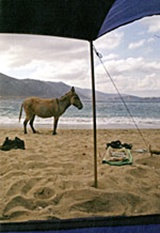Φωτεινή νύχτα, μια μέρα μετά την πανσέληνο, περπατώ με τον σκύλο, το βλέμμα μου σκοντάφτει στη θάλασσα, ανοιχτός ή κλειστός είναι ο ορίζοντας; το μαγαζί είναι κλειστός χώρος χωρίς ορίζοντα, δεν σε πάει κάπου, δεν ταξιδεύεις· έρχονται όμως οι άλλοι σε σένα,