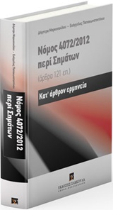 H έλλειψη ενός εγχειριδίου με αντικείμενο το ν. 4072/2012, ο οποίος κάλυψε μεταξύ άλλων και το Δίκαιο των Σημάτων αντικαθιστώντας τον προϊσχύοντα για δεκαπέντε και πλέον έτη ν. 2239/1994, και οι δυσχέρειες που αυτή δημιουργεί στην πρακτική ώθησε τους συγγραφείς στη συγγραφή αυτού του βιβλίου. Το βιβλίο έχει τη μορφή κατ άρθρου σχολιασμού. Όπου απαιτήθηκε θεωρητική ανάλυση, αυτή έγινε με κατά το δυνατό συνοπτικό τρόπο και με παραπομπή σε περαιτέρω θεωρία. Έμφαση έχει δοθεί στην παράθεση παραδειγμάτων (νομολογίας), εθνικής και Κοινοτικής, για την τεκμηρίωση της ανάλυσης.