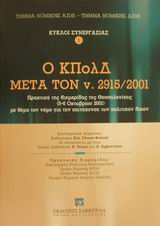 Πρόκειται για ένα πολύτιμο και αξιόπιστο βοήθημα προορισμένο να ενημερώσει πλήρως τον νομικό της πράξεως για όλα τα θέματα που θα αντιμετωπίσει κατά την εφαρμογή του νέου ν.2915/2001.