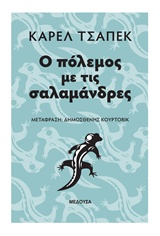 "Ο πόλεμος με τις σαλαμάνδρες" (1936) είναι μια σκοτεινή, ειρωνική αλληγορία της πολιτικής κατάστασης στην Ευρώπη του μεσοπολέμου. Χαρακτηρισμένο από πολλούς ως ένα από τα πρώτα δυστοπικά μυθιστορήματα, το αριστούργημα του Κάρελ Τσάπεκ θεωρείται από τα σημαντικότερα βιβλία του εικοστού αιώνα, κι αυτό γιατί εκείνο που το διακρίνει είναι το χιούμορ και το πικρό σατιρικό του πνεύμα που στρέφεται προς όλες τις κατευθύνσεις, την επιστήμη, τη θρησκεία, τον εθνικισμό, το ρατσισμό, τον καπιταλισμό, τους επιχειρηματίες, αλλά και τους διανοούμενους.