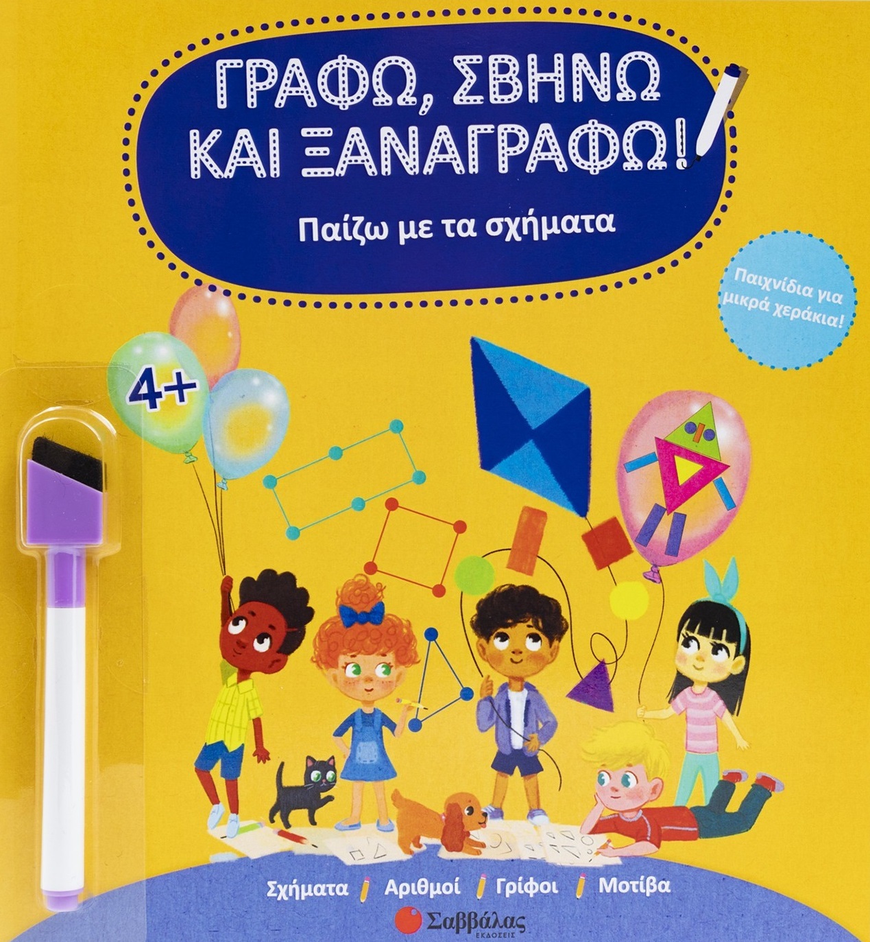Ένα διασκεδαστικό βιβλίο δραστηριοτήτων γεμάτο παιχνίδια για μικρά χεράκια! Στις σελίδες του μπορείς να παίζεις, να γράφεις, να ζωγραφίζεις και να σχεδιάζεις ξανά και ξανά με τον μαγικό μαρκαδόρο που σβήνει! Οι θεματικές των δραστηριοτήτων του βιβλίου είναι: • σχήματα • αριθμοί • γρίφοι • μοτίβα
