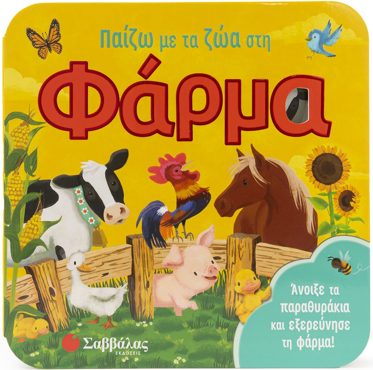 Ας μάθουμε καινούριες λέξεις για το σχολείο, το αγρόκτημα, τον κόσμο γύρω μας! Άνοιξε τα παραθυράκια και δες τις εκπλήξεις που κρύβουν! Κοίταξε μέσα από τις τρυπούλες και μάντεψε τι κρύβεται!