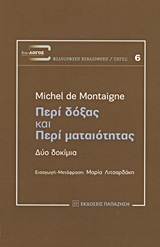Ο γάλλος στοχαστής Michel de Montaigne, το κριτικό και ελεύθερο πνεύμα του 16ου αιώνα, κατέγραψε στα "Δοκίμιά" του σκέψεις και αναλύσεις, προσεγγίζοντας με προσωπικό αλλά συγχρόνως και φιλοσοφικό τρόπο θεματικές αναζητήσεις της μετέπειτα οργανωμένης σκέψης και της ευρύτερης διανόησης. Με την πρωτεϊκή του γραφή και το πρωτοποριακό του έργο, κατέχει εξέχουσα θέση στην ιστορία των ιδεών της σύγχρονης εποχής, ενώ με τη νατουραλιστική οπτική των αναλύσεων του υποκειμένου και της ανθρώπινης ύπαρξης, θέτει τον άνθρωπο στο επίκεντρο και προτείνει μια βιοσοφία διαχρονικής εμβέλειας. Τα δοκίμια "Περί δόξας" και "Περί ματαιότητας", δείγματα της γραφής και της σκέψης του Montaigne, αντανακλούν το πνεύμα και το κλίμα της εποχής του, αλλά συνιστούν συγχρόνως τον καθρέφτη μέσα στον οποίο κάθε εποχή μπορεί να αναγνωρίσει τα χαρακτηριστικά της. Με άξονες τις έννοιες του τυχαίου και της ματαιότητας, προσφέρουν στον σύγχρονο άνθρωπο ερείσματα ηθικής και ψυχικής ανάτασης, γνώμονα σκέψης και πράξης για μια αυθεντική εκδήλωση του υποκειμένου σε προσωπικό και κοινωνικό επίπεδο.