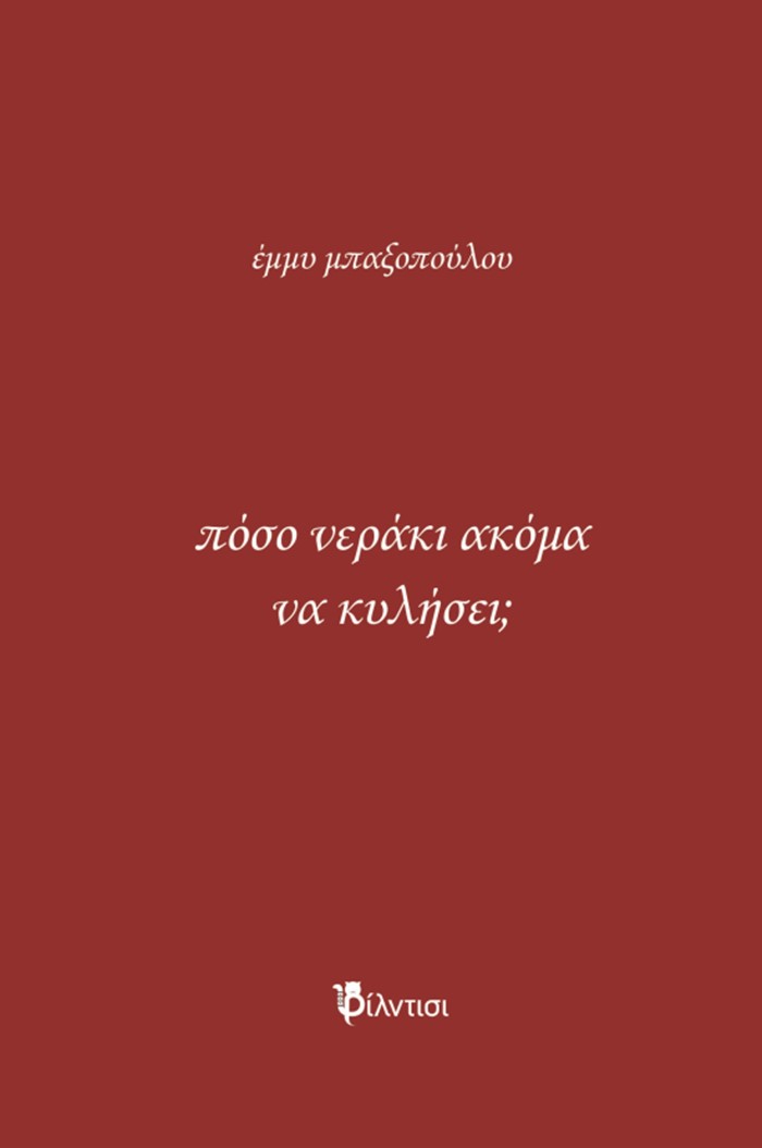 Κυκλοφόρησε η τρίτη ποιητική συλλογή της έμμυς μπαξοπούλου, αφιερωμένη: σ’ όλους που αόρατοι πασχίζουνε ανάμεσά μας. Χωρισμένη σε τρεις ενότητες: Αρόδου φορτωμένα, Ξυράφια και ποτάμια (ένα σώμα), πόσο νεράκι ακόμα να κυλήσει; Με δυο πεζοποιήματα στην αρχή και το τέλος της. «Αποκοιμήθηκα μέσα σ’ ένα σπίτι, γιατί είχα ένα σπίτι για ν’ αποτραβιέμαι, να ησυχάζω, να ξεχνώ. Το ‘χτισε η μαγική φασολιά του Τζακ, η ανάγκη των χεριών να πλέκονται σε δίκλωνες πλεξούδες, τα φορεμένα μου ρούχα κι όλη η γύμνια που κουβαλώ. Είναι δύσκολο να ξεχωρίσω τα χρώματα απ’ το πικρό μου αστέρι, να το χωρίσω σε λουρίδες, εδώ το φως, εδώ σκοτάδι, να διαλέξω. Μπερδεύονται οι σκιές στης κάμαρας τη χώρα. Γινόμαστε οι κάθε δυο που σμίγουν και χωρούνε στο ίδιο μαξιλάρι. Που ξεδιπλώνονται πηγές κι ανάποδα αναβλύζουν να στεριώνουν ένα εμείς, λουλούδι σαρκοφάγο να μας καταπίνει. Και έπειτα μας φτύνει. Απλώνει η γύμνια, θέλει να ριζώσει, δε της φτάνει το δικό μας αίμα. Βαφτίζει αγάπη ό,τι θέλει να ξεφύγει, απ’ την ορφάνια. Τίποτα δε της φτάνει. Κάθε πίστης μου, ο Προμηθέας πατέρας. Και ανεβαίνω μαζί του κι από το βράχο του κατρακυλώ, της αρνησιάς βροχή. Μονάχος, στη γύμνια του έρωτα και του θανάτου που είναι ίδια. Και στου ύπνου -για να ζήσω- την πατρίδα.»