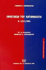 Το παρόν έργο αποτελεί την πιο ολοκληρωμένη ανάλυση του δικαίου της προστασίας του καταναλωτή. Μετά την παράθεση της σχετικής νομοθεσίας (Ν 2251/1994, ΠΔ 301/2002, Ν 3297/1994, ΚΥΑ 70330/2015), ακολουθεί η κατʼ άρθρο ερμηνεία του βασικού Ν 2251/1994, όπως ισχύει σήμερα.