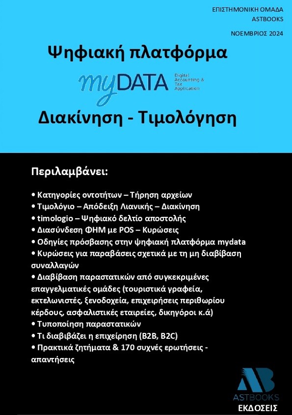 Το νέο βιβλίο με τίτλο «ΚΑΤΑΣΤΑΤΙΚΑ - ΠΡΑΚΤΙΚΑ - ΣΥΜΒΑΣΕΙΣ – ΕΝΤΥΠΑ 2024» αποτελεί μία συλλογή χρήσιμων νομικών και φορολογικών εγγράφων που απαιτούνται για την εύρυθμη λειτουργία μίας επιχείρησης...