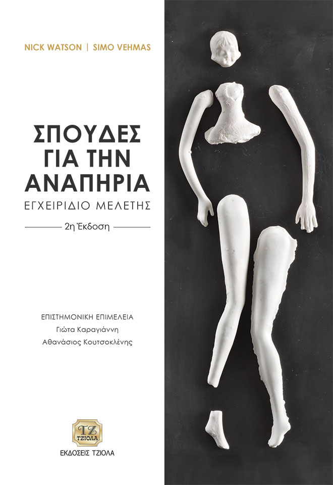 Εισαγωγικό σημείωμα - Σπουδές για την Αναπηρία: Για ένα διεπιστημονικό μέλλον - Κατανοώντας το κοινωνικό μοντέλο για την αναπηρία: Παρελθόν, παρόν και μέλλον - Κριτικές Σπουδές για την Αναπηρία: Επανεξετάζοντας τις συμβάσεις για την εποχή της μετανεωτερικότητας - Το μειονοτικό μοντέλο της αναπηρίας: Από το φιλελεύθερο στο νεοφιλελεύθερο μέλλον - Η Διεθνής Ταξινόμηση της Λειτουργικότητας (ICF) και η σχέση της με τις Σπουδές για την Αναπηρία - Αναπηρία και ανθρώπινα δικαιώματα - Εξετάζοντας κριτικά τα συναισθήματα στο φαντασιακό των μη ανάπηρων: Φόβος, οίκτος και αηδία - Ψυχο-συναισθηματικός μισαναπηρισμός: Η χαμένη σύνδεση; - Η βιοπολιτική της αναπηρίας και η ζωικότητα στη Harriet Mcbryde Johnson - Αυτενέργεια, δομή και χειραφετική έρευνα: Ερευνώντας την αναπηροποίηση και τη βλάβη - Ταυτότητες των Κωφών στις Σπουδές για την Αναπηρία - Θεωρητικοποίηση της θέσης των ατόμων με μαθησιακές δυσκολίες στις Σπουδές για την Αναπηρία: Πρόοδος και εμπόδια - Μακροχρόνιες αναπηροποιητικές συνθήκες και θεωρία της αναπηρίας - Ο κριτικός ρεαλισμός ως το τέταρτο «κύμα»: Εμβάθυνση και διεύρυνση των κοινωνικών προοπτικών για την ψυχική δυσφορία - Ήρθε η ώρα! Κατανοώντας την εμπειρία των διαταραχών ομιλίας - Τύφλωση/όραση: Οι Σπουδές για την Αναπηρία και η αντίσταση στον διαχωρισμό - Κοινωνικός πόνος στη νεοφιλελεύθερη εποχή: Η ιδέα του «πλεονάσματος» και το οριακά ανάπηρο υποκείμενο - Ανάπηροι και επαγγελματική απασχόληση: Μια οπτική από το Ηνωμένο Βασίλειο - Σπουδές για την Αναπηρία, Παιδαγωγική της Ένταξης και αποκλεισμός - Η ανεξάρτητη διαβίωση και η αποτυχία των κυβερνήσεων - Η διάγνωση ως κοινωνική πρακτική και το ενδεχόμενο διατάραξής της - Διατήρηση των ορίων: Διερεύνηση των διασταυρώσεων των ταυτοτήτων της αναπηρίας και της μετανάστευσης - Η αναπηρία στις αναπτυσσόμενες χώρες - Η μετα-αφήγηση για την αναπηρία: Κοινωνικές συναναστροφές, πολιτισμική αναπαράσταση και κριτική αποφυγή - Τι μπορεί να μας πει η φιλοσοφία για την αναπηρία; - Η ψυχολογία της αναπηρίας - Αμφισβητώντας τον διαχωρισμό βλάβης/αναπηρίας: Η ιστορία της αναπηρίας και το κοινωνικό μοντέλο για την αναπηρία - Αναπηρία, αθλητισμός και σωματική δραστηριότητα - Δεν υπήρξαμε ποτέ αρτιμελείς: Σκέψεις για την αναπηρία - μη αναπηρία και την υποκειμενικότητα υπό το πρίσμα των Σπουδών Επιστήμης και Τεχνολογίας - Φεμινισμός και αναπηρία: Η χαρτογράφηση μιας πολυπλοκότητας - Αναπηρία και σεξουαλικότητα - Φυλή/εθνικότητα και Σπουδές για την Αναπηρία: Προς μια αναλυτική διατομεακή προσέγγιση - Μητρότητα και αναπηρία: Από την ευγονική στη νεο-ευγονική - Κατανοώντας τις ανάπηρες οικογένειες: Αντικατάσταση των ιστοριών βάρους και ανθεκτικότητας με ιστορίες αλληλεξάρτησης - «Ελπίζω να πεθάνει εκείνος πριν από εμένα»: Ξετυλίγοντας τις συζητήσεις σχετικά με τη γήρανση και τα άτομα με νοητική αναπηρία - Ευρετήριο