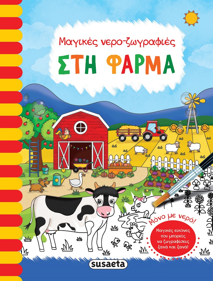 Δημιούργησε πολύχρωμες εικόνες από τη ζωή στη φάρμα με το πινέλο που θα βρεις στο βιβλίο! Βούτηξέ το σε νερό, πέρασέ το πάνω από τις σελίδες και δες να ζωντανεύουν τα πιο απίθανα χρώματα! Άφησε τις εικόνες να στεγνώσουν και ζωγράφισέ τες ξανά και ξανά! Στο βιβλίο αυτό θα βρεις: • 12 μαγικές εικόνες για νερο-ζωγραφική • 18 εικόνες για να τις ζωντανέψεις με τα δικά σου χρώματα • 7 σελίδες για τα δικά σου σχέδια και τις δικές σου ζωγραφιές