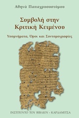 Το παρόν εγχειρίδιο καλειδοσκοπικά εστιάζει σε συγκεκριμένες πτυχές τεχνικής και λειτουργικής φύσεως της Κριτικής Κειμένου· αφενός παρέχει έναν συγκεντρωτικό κατάλογο, όπου αναγράφονται και ερμηνεύονται οι βασικές συντομογραφίες, οι τεχνικοί όροι και τα λοιπά κριτικά σύμβολα της Κριτικής επιστήμης, και αφετέρου παρουσιάζει δειγματικές αναγνώσεις (με συνοδευτικά επεξηγηματικά σχόλια) για τα τρία είδη υπομνημάτων που παρατίθενται σε κριτικές εκδόσεις κειμένων, δηλ. Υπόμνημα Πηγών, Κριτικό Υπόμνημα και Υπόμνημα Παραλλήλων Χωρίων. Ωσαύτως, στο εγχειρίδιο παρατίθεται μια σύντομη ιστορική ανασκόπηση της Κριτικής Κειμένου (με αναφορές στη στεμματική θεωρία και το στέμμα κωδίκων), καθώς και ενδεικτική περαιτέρω βιβλιογραφία.