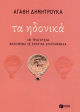 Τα "Ηδονικά", ένα βιβλίο δώρο για ερωτευμένους και για όσους σέβονται την τρέλα που έχει ο έρωτας, και κυρίως γι΄ αυτούς που ετοιμάζονται να τον ζήσουν, να τον απολαύσουν, να τον χαρούν. Ένα πρωτότυπο και απολύτως ποιητικό ερωτικό "μανιφέστο" σε μια εποχή που ο έρωτας, αντί για χαρά της ζωής και κινητήρια δύναμη των πάντων, γίνεται, χάνοντας κάθε έννοια ρομαντισμού και τρυφερότητας, όλο και πιο αγοραία σαρκικός ή βίαιος μέχρις εξόντωσης του ασθενέστερου από τους δύο. Για την παρούσα έκδοση η Αγαθή Δημητρούκα επέλεξε -ώστε να ανταποκρίνονται σε όλες τις τάσεις- είκοσι πέντε ερωτικά επιγράμματα από την Παλατινή Ανθολογία, ένα ποίημα της Σαπφούς και δύο του Αλκαίου, τα οποία μετέφρασε και ανάπλασε σε δεκαοχτώ σύγχρονα ποιητικά τραγούδια παραδίδοντάς τα ως εξής: στη μια σελίδα το αρχαίο κείμενο και η ακριβής μετάφρασή του και στην άλλη το αντίστοιχο τραγούδι, έτοιμο προς μελοποίηση. Αχ Έρωτα, ή όλο αφαίρεσε το αγαπώ ή πρόσθεσε το αγαπιέμαι κι αδικίες σβήσε. Τον πόθο κοίτα να μοιράζεις ίσια και στους δυο αν θέλεις να σε λεν θεό, αλλιώς θεός δεν είσαι.