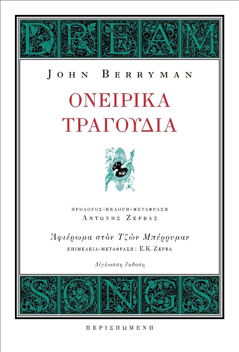 Ο Τζων Μπέρρυμαν έγινε ευρύτερα γνωστός στα ποιητικά μας πράγματα χάρη στο Αφιέρωμα της Νέας Εστίας του 2004. Η παρούσα έκδοση συνιστά την τρίτη κατά σειρά, και μάλλον τελική, μεταφραστική απόπειρα ενός έργου που μάγεψε απελπιστικά τη νεότητά μου και του οποίου ο μοναδικός χαρακτήρας εξακολουθεί να απελπίζει τα γεράματά μου. Πρόκειται για τα πιο κρυπτικά, τα πιο γριφώδη ποιήματα της αγγλόφωνης ποίησης. Δεν είναι τυχαίο άλλωστε ότι δεν μεταφράστηκαν ποτέ σε άλλη γλώσσα Το ερώτημα του Μπέρρυμαν αφορά το σύγχρονο λυρικό υποκείμενο και κατ’ επέκταση το κατά πόσον είναι ακόμα δυνατή η ποίηση. Από την άποψη αυτή, τα Ονειρικά Tραγούδια αποτελούν ένα καθαρτήριο της ποιήσεως και των σύγχρονων αταβισμών της. Ο Μπέρρυμαν έδειξε ότι δεν είναι τα υψηλά νοήματα και οι γνώριμοι αισθητικοί τρόποι που μας κάνουν «να κατοικούμε ποιητικώς». Η χυδαία καθημερινότητα, το χθαμαλό ύφος, η φλύαρη κοινοτοπία είναι επίσης δρόμοι προς την ποιητική κατοικία. «Και στην κουζίνα υπάρχουν θεοί», έλεγε ο Ηράκλειτος, και ίσως μόνο εκεί να υπάρχουν πια, εφόσον η ανάγκη σε σπρώχνει να σκεφθείς την ελευθερία, και η περατότητα την αλήθεια σου. Όποιος λοιπόν εισέρχεται στο σύμπαν του Μπέρρυμαν πρέπει ν’ αφήσει κατά μέρος τις «ποιητικές» του προσδοκίες, τα φιλολογικά ιδεώδη «καλού γραψίματος». Η μόνη δυνατότητα της ποίησης σήμερα είναι μια βουτιά στην άβυσσο. Τα υπόλοιπα μοιάζουν σαν καλλιγραφημένα ιδεολογήματα, τα οποία βεβαίως δεν θα πάψουν να παράγονται μέχρι τελικής απαξίωσης του ποιήματος, εδώ και σ’ όλη την οικουμένη. - Α.Ζ. Περιλαμβάνεται εκτενές Επίμετρο/Αφιέρωμα στον ποιητή Τζων Μπέρρυμαν