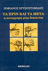 Λέγουν ότι κάθε δημοσιογράφος κουβαλά εντός του ένα "μυθιστόρημα", και ότι δεν το γράφει, δεν το ολοκληρώνει, συνεχίζει να δημοσιογραφεί. Η περίπτωση αναφέρεται και στον δημοσιογράφο-συγγραφέα του βιβλίου αυτού, αφού, επί σαράντα και πλέον χρόνια, επιμένει ν‘ αρθρογραφεί. "Τα πριν και τα μετά" είναι επιλογές δημοσιογραφικών κειμένων της δεκαετίας 1987-1996, όπως δημοσιεύθηκαν στην "Αυγή" και στη στήλη του "Ελεύθερα και απροκατάληπτα". Καλύπτουν καταγραφές ή προεκτάσεις γεγονότων που όλοι, λίγο-πολύ, ζήσαμε, από τα μεγάλα και συνταρακτικά (κατάρρευση του διπολισμού, πόλεμος στον Κόλπο, Γιουγκοσλαβικός εμφύλιος, σκάνδαλο Κοσκωτά, Μακεδονικό, Κυπριακό, τελευτή του Ανδρέα Παπανδρέου, κ.ά.) ως τα μικρά και σταθερά, την εποποιία της καθημερινότητας, τον μόχθο, την ελπίδα των απλών ανθρώπων. Κατά τα άλλα, ο συγγραφέας πιστεύει ότι και ο δημοσιογράφος γράφει, με τον τρόπο του, ιστορία και ότι κανένα κείμενο, δημοσιογραφικό ή λογοτεχνικό, δεν καταξιώνεται χωρίς έρωτα, πάθος, δύναμη, χωρίς περιεχόμενο και ποιότητα που έλκουν.