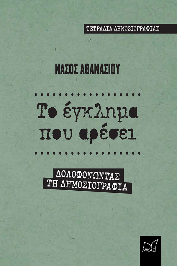Τι είναι δηµοσιογραφία; Πού έχει καταντήσει σήµερα; Γιατί τόσο χαµηλά; Ποιοι ευθύνονται; Αυτά τα ερωτήµατα επιχειρεί να απαντήσει ο Νάσος Αθανασίου στο πρώτο από τα δηµοσιογραφικά τετράδιά του που εκδίδουµε. Ο Νάσος Αθανασίου γράφει για τη δηµοσιογραφία που δολοφονείται κάθε µέρα, κάθε ώρα, σχεδόν παντού στον πλανήτη, δηλαδή για ένα ειδεχθές έγκληµα που αρέσει στον κόσµο και, επειδή ακριβώς του αρέσει, γίνεται συνένοχος.