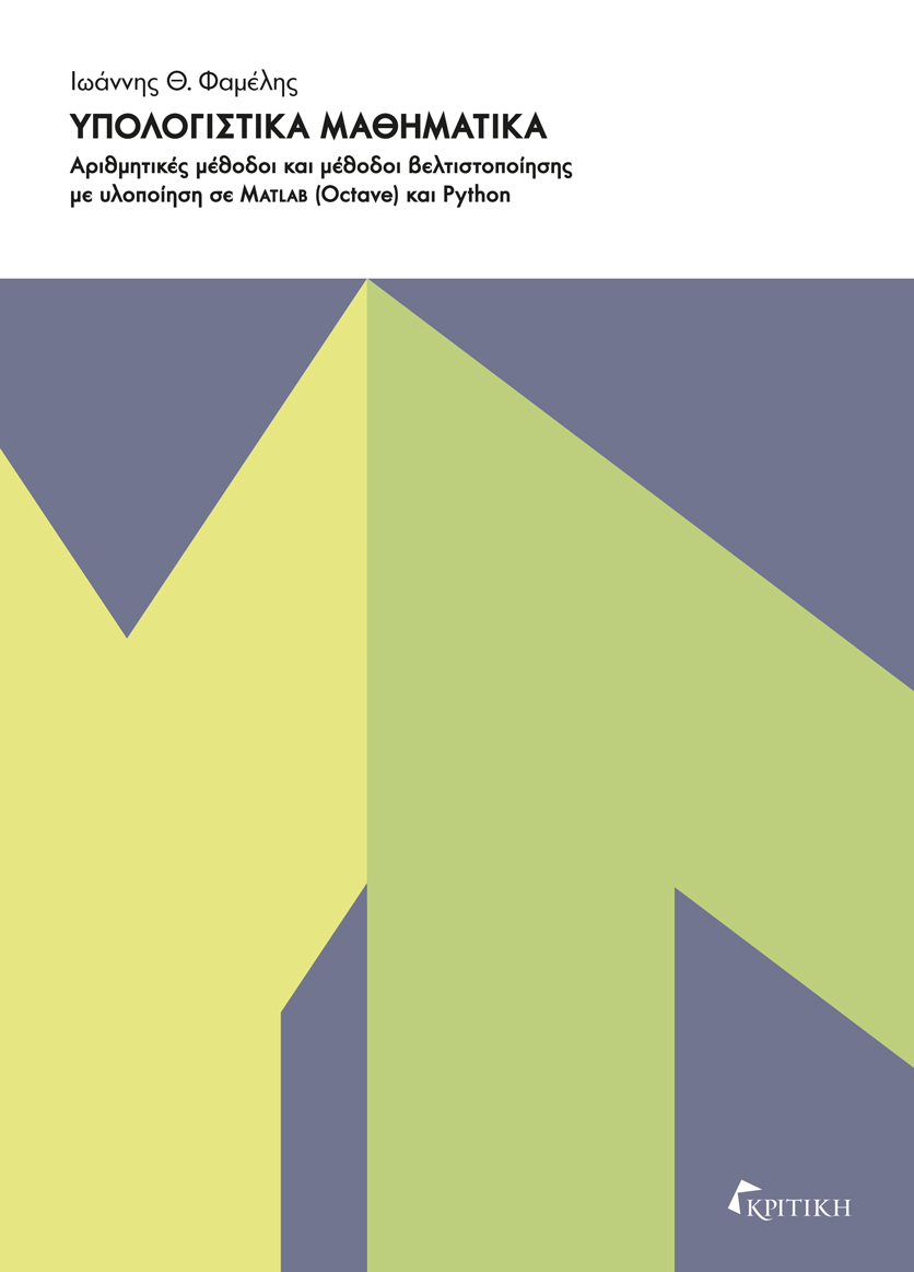 Στην εποχή μας, με τη χρήση υπολογιστικών συστημάτων, το μεγαλύτερο μέρος των μαθηματικών προβλημάτων επιλύεται προσεγγιστικά από ταχύτατες και ιδιαίτερα ακριβείς μεθόδους. Αυτές τις ονομάζουμε «αριθμητικές», και το πεδίο της επιστήμης των μαθηματικών που τις μελετά ονομάζεται Αριθμητική Ανάλυση ή και μερικές φορές Υπολογιστικά Μαθηματικά. Τα πεδία αυτά των μαθηματικών έχουν μεγάλη τομή αλλά δεν ταυτίζονται. Το βιβλίο καλύπτει τη βασική ύλη που διδάσκεται σε ένα προπτυχιακό μάθημα Αριθμητικής Ανάλυσης. Επίσης παρουσιάζει, από τη σκοπιά των Υπολογιστικών Μαθηματικών, τις Μεθόδους Βελτιστοποίησης και μεθοδολογίες της Υπολογιστικής Νοημοσύνης. Αν και απευθύνεται σε προπτυχιακούς φοιτητές, αναπτύσσει θέματα που ενδιαφέρουν και μεταπτυχιακούς φοιτητές. Σε κάθε κεφάλαιο η θεωρία παρουσιάζεται με αλγοριθμικό τρόπο και πολλά λυμένα παραδείγματα. Επίσης, υπάρχει και ένα εργαστηριακό μέρος όπου υλοποιούνται οι αλγόριθμοι σε MATLAB (Octave) και Python. Τα προγράμματα έχουν συνταχθεί έτσι ώστε να είναι δυνατό για τον αναγνώστη, που δεν έχει μεγάλη πείρα προγραμματισμού, να μελετήσει τους αλγόριθμους που υλοποιούν. Οι λυμένες και προτεινόμενες για λύση ασκήσεις έχουν επιλεχθεί και από εφαρμογές στην επιστήμη του μηχανικού.